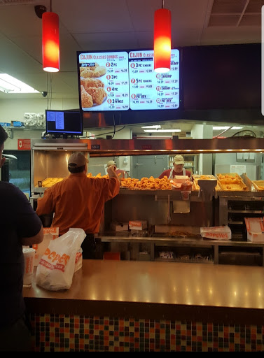 All employees were very friendly and efficient . We love coming to this particular Popeyes. The shrimp was alittle hard but average .