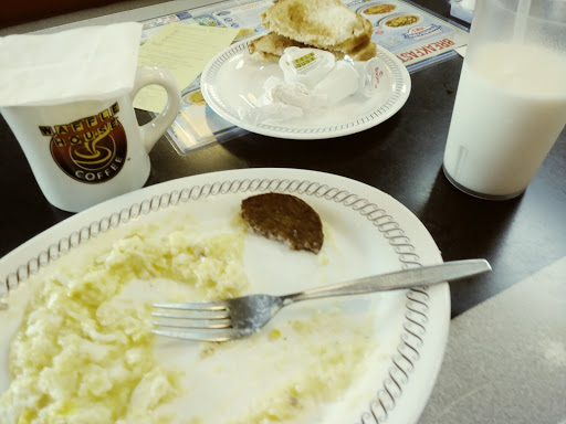 waffle house is for the most part, pretty good. but there food is usually a hit or miss some mornings iv had waffle house and the food and service was absolutly ggreat and other times it was just terrible i do recommend trying waffle house if you never have though.