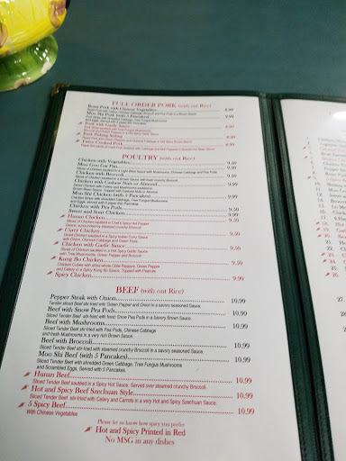 This is our go-to Chinese place. The food is delicious (No MSG!), the people who work there are very nice, and the food is reasonably price. If you order ahead, you can usually pick up your food within fifteen minutes.