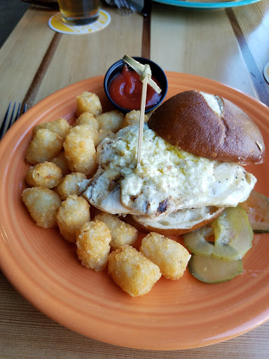 We sat on the outside deck and loved the view. Corey and Jason- the bartenders were personable and made great suggestions! I was very impressed with the food selections. They were much better than I thought they would be for a brewing company! My first visit we had the crab rangoon skillet dip which was awesome! I had a salad with quinoa, cabbage, Thai style dressing and lots of veggies. It was very good. A week later I was back in town and we decided to go to the Sea Dog again! We had pan blackened haddock tacos which were amazing! They do not skimp on the haddock.