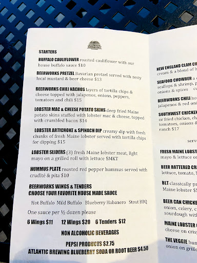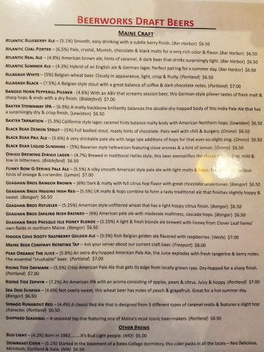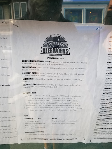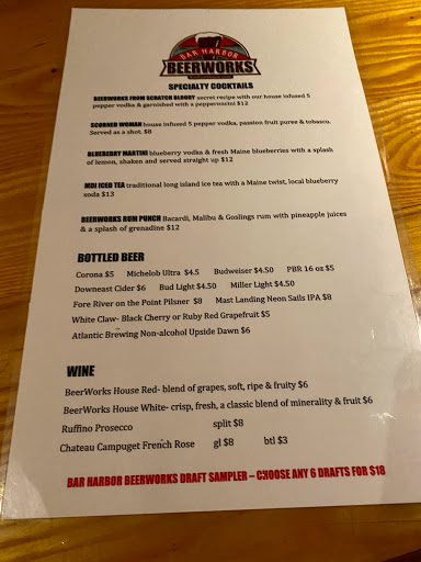 My husband and I stopped by for a drink after dinner and received excellent service from all the staff. The beer was great too!! That was last night... Let me just say this establishment has some wonderful young adults working there!! This evening after dinner we returned to a car with a dead battery. We were parked right in front of the restaurant and the hostess said she had jumper cables in her car. Within minutes she got her manager who brought his car around and jump started ours (after helping us push our car to a spot to make room for his). Not only is the food, drink and service excellent here; but the employees have a heart of gold!! Thank you Tucker and Brooke!!! Be sure to visit Beerworks when in Bar Harbor!!