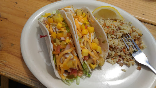 While service and the view of the water was great, food was mediocre and overpriced for the lack of quality. This place probably does well in volume from the cruise ships that dock nearby which I suppose makes the bland food acceptable for business. Fish tacos were overly Americanized/meh with too much pre-shredded cheese and almost none of the mango salsa or lettuce they were supposed to come with. I love good cheese, but dont want the average stuff overpowering the plate to the point its the only thing I taste. Cilantro wasnt offered and the jalapenos were picked from a can rather than fresh in the salsa. I sincerely doubt the chef has ever had a good taco or fish taco to know better. The rice was also bland and somewhat mushy like it sat in a steam table pan with too much liquid for several hours. Clam chowder was OK, but nothing special, could not taste the difference between canned other than the clams were maybe a little better sized, but there was still more potato than clams. The other items ordered were also just OK, but nothing special. Having paid less for much better tasting food (including mainland seafood restaurants) and more for much better quality, this restaurant is just not a great value for the discerning palate.