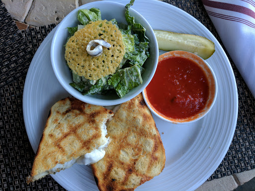 Looks dressy and fancy, but reasonably priced and you can definitely go for dinner in more casual clothes. Really nice atmosphere with indoor and outdoor seating, and great staff. The bread served with marinara sauce was amazing and everything we ordered was delicious.