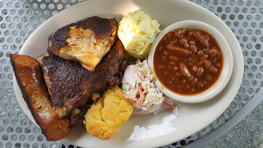 The ribs have a wonderful "bark" on them (technical term for the crust for this style of dry barbeque) and were so tasty I didnt even think of covering them with the standard barbeque sauce. Had the sampler platter which also included chicken, sausage, and pulled pork. Cornbread, cole slaw, and beans were standard sides. This was their Ellsworth location.