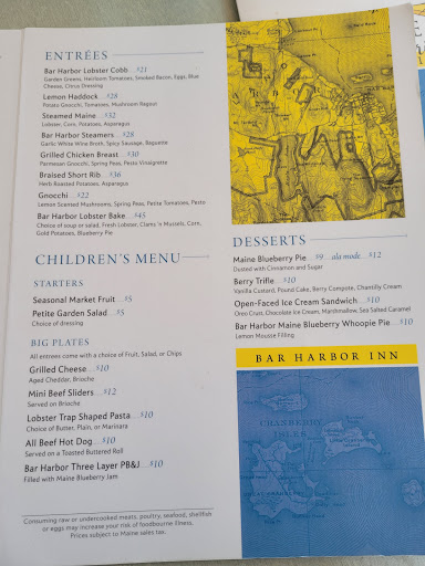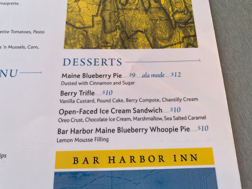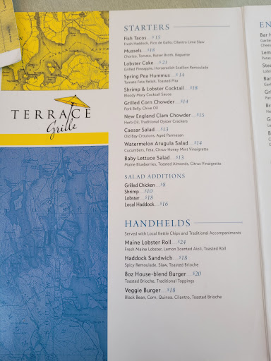 When we came to the terrace grille, it looked like a very nice place to eat. The view outside is amazing. But you have to enjoy the view on plastic chairs and tables, meanwhile still paying a lot of money for your meals! (12$ for an appetizer!). The food was pretty good, but the portion where just too small for the money you are paying. We also ordered a glass of red wine, the wine was warm! We had to ask for ice cubes to put in a red wine... Unbelievable! Dont be fooled by the nice view of bar harbor. If you like the view, go sit in the park next to it and eat in a well reviewed restaurant.