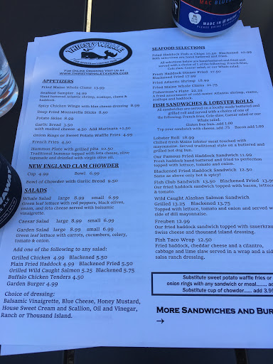 Great place to go get lunch. My wife and I enjoyed our experience at the Thirsty Whale. Our waitress was top notch, the food was very good, and the prices were some of the best in Bar Harbor. I had the Lobster Roll and my wife had the Spicy Chicken Sandwich. The portions were nice size and they had some great Beer selections on tap.