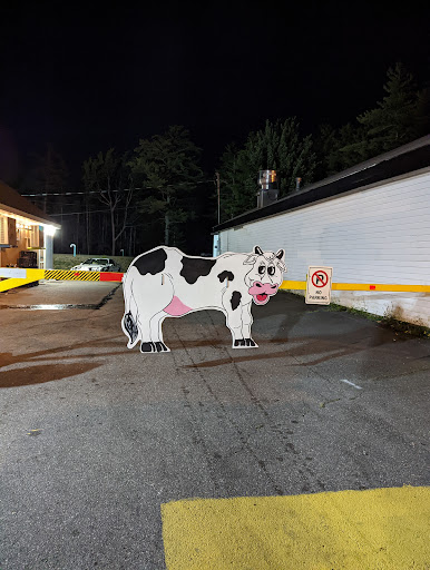 It was busy but not crowded at 8pm on a Saturday night. Seating is Adirondack chairs outside the window where you order, and theres a weird cow thing with udders on it that your children can milk for, I guess, fun. I had cookies and cream (light on the cookies, but the base was good enough that I didnt mind) and black raspberry (nothing to write home about).