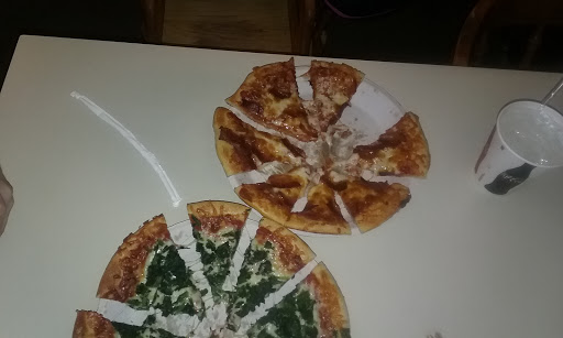 Pizza by Alex is a real nice family business. They have a single size, which is about 9in or so. I would recommend it for anyone looking for a meal that does NOT come from one of those huge chains resteraunts, but rather a genuine bite to eat.