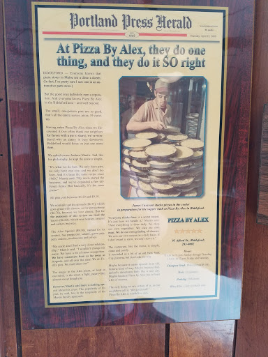 This is the "go to" pizza place in Biddeford and surrounding areas. Tried and true pizza making, crispy crust edges, melt in your mouth toppings. New ovens are great but my preference is the "old school" oven. Still served on cardboard plates. Times I lived away, Id get them half-cooked, freeze them, travel and finish cooking them when I got home. Tasted like I was still at Alexs....