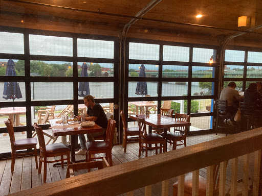 We arrived at 11 when they opened and sat on the deck overlooking the river. This was so nice and comfortable. Our waiter seemed very confused to say it nicely. He took our drink order and came back five minutes later asking us what we had ordered. We ordered the Bloody Mary drink special as pictured on this page, only ours didnt come with the shrimp as shown. He then came back to the table and asked if we knew salmon was what we ordered. Ummm yes we did happen to catch that. Two burgers were ordered also and a chicken dish. The burgers came out something completely other than what was ordered. Chicken dish was dry and seemed to have been microwaved. During all the waiting and wrong food a tent was being set up and not secured to the ground. A gust of wind took it and it almost crashed into our brand new truck. We had to get up and help make sure it didnt fly through the the windshield as a waiter stood by saying something out a redneck show. Maybe he should have helped when he saw customers up helping. We asked for boxes for our left over food and were given dirty boxes. Lastly the waiter dropped the bill and took it and never returned to the table.... Wow thats ballsy to assume the change was the tip. I think some training for the staff is a must.