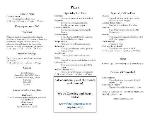 We love finelli Pizzaria- the thin crust, fresh ingredients, and specialty choices, the friendly atmosphere and cheerful service- oh, and the beer selection! Its our favorite place to eat in Ellsworth!