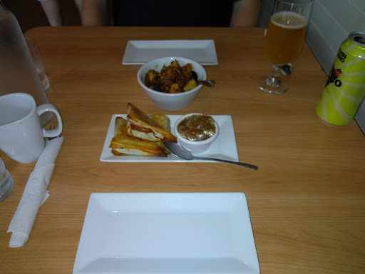 This place had great Indian and Sri Lankan curry. We had the Sri Lankan curry with shrimp and tikka masala with lamb, naan with chutney, and an order of samosa. Everything was great. The heat added is accurate, so if you like it hot go medium. If you want it to burn a hole in your tongue and sweat for a week, go hot. The samosa may have been the best we ever had. They used phyllo dough! Fantastic. The chutneys with the naan were amazing. If you need a break from lobster, try this place. 1 star off for no beer to soothe the tongue. 5 stars for the food.