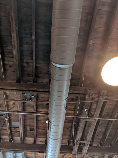 In an old warehouse or such, as are many businesses in Portlands Old Port, it is surprisingly large and spacious. Service was quick ( and they were busy) and the coffee was excellent, bought a pound home with me. I indulged in a cinnamon roll which was amazing, liked the place so much we went back after out ferry put returned. Highly recommended. Btw just made a pot of the Bali which I ls great.