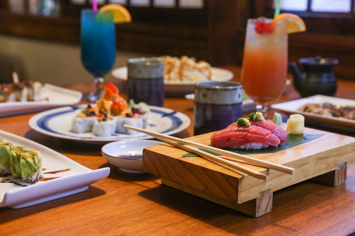 A very traditional Japanese Sushi and Steakhouse. Great food and drinks. Excellent entertainment downstairs at the Hibachi Tables. A large downstairs cocktail bar. They have television at the bar. Upstairs dining is more formal with Kimono dressed waitresses serving in traditional fashion. A great place to eat.