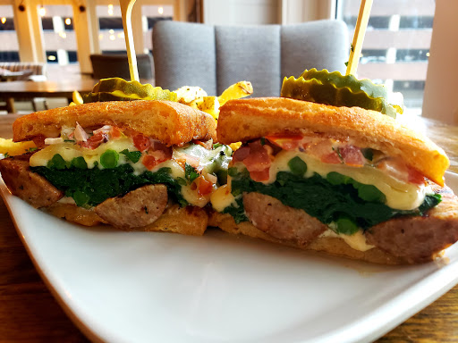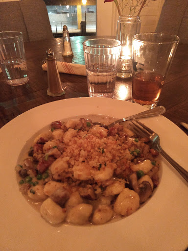 This is the first time I have been to this location (I often visit their location in Las Vegas). The building sits along the ferry terminal, with an upstairs dining room overlooking the water-really a beautiful view. Downstairs, the bar area is a bit smaller, but nice and cozy. We a had a few beers downstairs, along with some bacon, cheddar and green onion fries, and some wings. While I was just expecting regular pub grub, I was quite impressed how good everything was, particularly the fries. After a few beers, we moved upstairs and sat at the bar. Our bartender Evan, was a witty and funny guy, who is originally from Ireland. He is very fast behind the bar, and it was entertaining watching him handle the ever increasing crowd, without missing a step. After a few more beers (Evan never lets your glass sit empty!) we decided to order dinner, and had the Publicans Rueben and the Lobster mac and cheese. The Rueben was delicious as always, and the lobster mac and cheese was simply amazing. I could have eaten a few servings of this! I really enjoyed visiting this location, and cant wait to come back