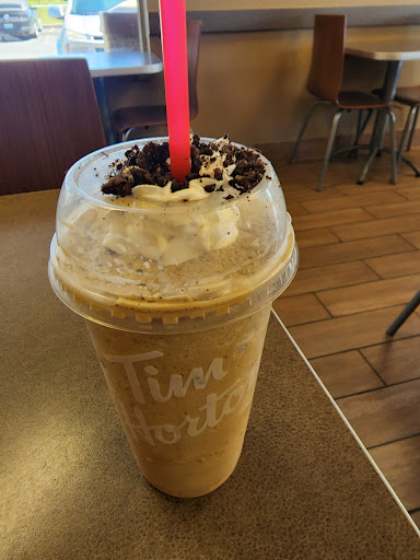 This Tim Hortons is great. They keep it super clean. Even though they are known for donuts and coffee, I love to go for lunch. Their turkey bacon club is great and the bread it is served on is unbelievably good for a chain store sandwich. The grilled chicken fajita wrap is a good lunch option too. If you like your coffee a bit stronger than DD serves it, this is your place. They even have a great selection of teas and herbal tea. If hot chocolate is your thing, they serve a great cup. Their drive thru is very popular but Inside they have free WiFi, plenty of seating, and dont mind if you hang around a while to talk with friends.
