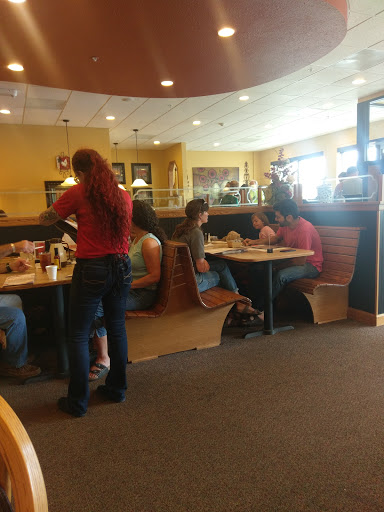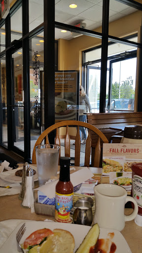 Interior warm and comfortable. Easy access. Plenty of parking. Wait staff, with my experience, was excellent and friendly. Coffee was a pleasure. I appreciate the carafe of coffee versus the wait staff having to return to fill. Cinnamon-raisin French toast was delicious. Natural maple syrup for the asking...I do not recall if extra charge, but it is worth it not to have flavored corn syrup, which is common on the market. Seating is comfortable. Nice place to meet friends and family. I was there the last week in May, 2015. I will go back.