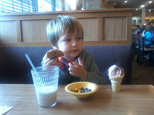 If your goal is to stuff as much food of questionable quality into your face as possible, this is a great place to go. The food is not particularly high quality, the dessert bar received a ghetto overhaul when they took over from Old Country Buffet (seriously, Fruity Pebbles is not a valid ice cream topping) and the best dishes, such as orange chicken, are frequently waiting to be replenished. At $12/adult, its not particularly cheap, either. For far less than that and less than a mile away you can get a scrumptious 5 Guys burger ($6), a full Red Robin meal with bottomless fries ($11), a healthy Chipotle burrito ($8), and have confidence that youre not eating straight out of a tin can from Sysco. Somehow my family keeps responding to the Sirens call of all-you-can-eat and we end up there, and *every single time* we regret it. The fresh baked chocolate chip cookies are pretty good. However, I took one home once and ate it cold and it did not taste like food.