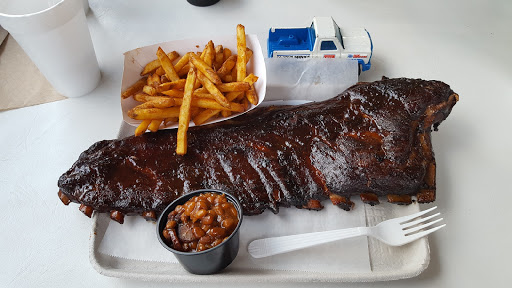 Even though it looks sketchy, it is by far one of the greatest BBQ ive had! Loved how you could see your food being actually barbequed. The service was excellent. I got the half chicken dinner which was very good(people who hate bones beware). My sister got the smoked chicken Mac n cheese which was sub par for macaroni and had two big pieces of fat in it with the chicken. My mom got the pulled pork dinner which was more mushy than usual. The good parts, though, was the corn on the cob which was very fresh and a good side to all that BBQ we are. My brother got a whole rack of ribs which were amazing! Overall, I would definitely come back with a few changes to my order