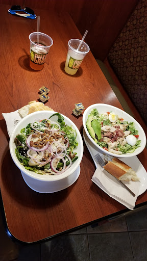 Panera is a great spot to stop and get lunch. It is somewhat healthier than other fast stop locations, mainly because of better ingredients and portion control. This location is the best Panera Ive been too. Its always clean inside and I feel welcomed when I walk in the door. The staff has always been friendly (I frequent Monday-Friday lunch hour). The salads are excellent. You get a sizeable portion and they are low in calories (compared to most restaurant salads). My favorite is the Thai chopped chicken salad. They add chopped peanuts and a peanut sauce which makes the salad great. The soups are also excellent and relatively low calorie (unless you get it in a bread bowl- which is obviously the yummier way to go). The sandwiches have left something to be desired. Ive tried a few of them now.. the asiago steak and cheese, the chicken caeser, etc.. and none of them have been worth writing home about. They seem too small and do not have enough filling. For the money, Id rather have a large filling salad. Now the pastrys and breakfast foods are a different story! They are huge and decadent. However, I try to avoid even making eye contact with the display case because my reason for going to Panera is trying to eat a healthy meal! Stop tempting me with your delicious treats Panera Bread!! If you havent already, sign up to be in their loyalty club. The cashier will scan your card every time you make a purchase, and every so often youll get a free item (usually a pastry or beverage) or a couple dollars off your purchase. Its free to sign up!
