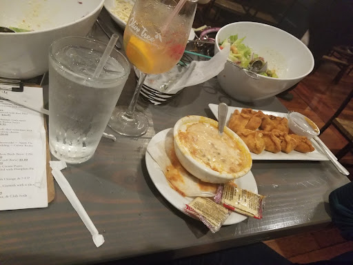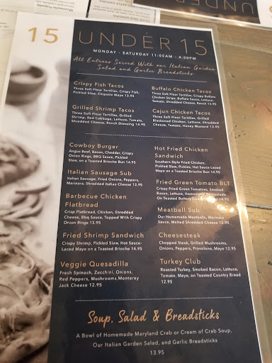 Get the crab cakes. I just finished a double crab cake entree (should have gotten the single, theyre huge). It was a lot of lump crab with a golden fried exterior. Very little filler. Had I known they would use so much crab meat I would have gotten them broiled. It was $30 for the entree which isnt bad at all for what they serve. It was very good. My wife got Seafood Alfredo that was very good but nothing life-changing and my daughter got the kids stuffed shells which came with a pretty generous portion for a kids meal (2 shells). The shells were the same story, good food but nothing extraordinary. We got take-out so I cant comment on the wait staff or service, but the pickup was ready quickly and the staff at the counter seemed friendly enough.