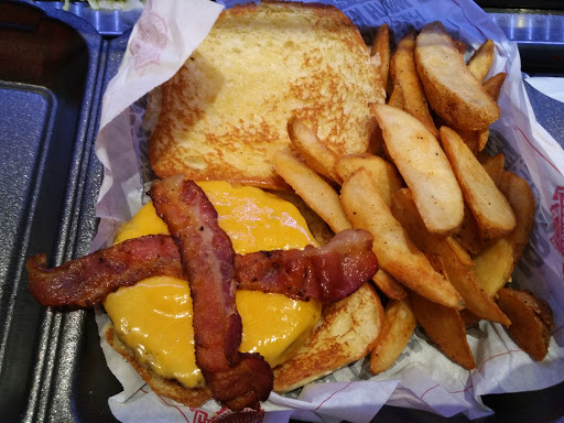 The burgers and fries are delicious. Ive always enjoyed being able to top my burger my way and Fuddruckers is the place to go for that. A bit pricey though. The restaurant is fairly clean however its a little dark and sometimes the cheese dispenser is empty. Usually not a crowded restaurant.