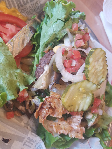 Great food, with the availability of Buffalo Burgers being a major draw for me, as theres only 1 other chain in the area that Ive been able to find them at. The pricing is consistent with the quality of the food. I had to knock 1 star off, though, due to constantly experiencing the same problems that have never been addressed. 1) In the Mens Room, the stupid motion sensor sinks barely work. It can often take a whole minute of hand waving just to get it to turn on. These need to be replaced with proper sinks that actually WORK immediately, if not sooner! 2) The Coca-Cola Freestyle machines constantly have problems at this location. On this visit, 1 wasnt working at all, displaying an error message, while the other had a flooded drip bin under the grate you place your cup on. It could be that Coca-Cola needs to replace these machines with 2 new ones. Ill keep coming back due to the quality of the burgers, but theres definitely some room for improvement at this location.