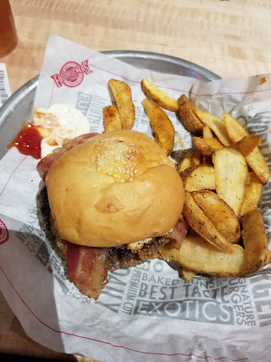 Great burger with many options, including many healthy ones. I love all the toppings at the topping bar, skip paying extra for a slice of cheese by putting free cheese sauce on the burger and fries instead. I do miss all the arcade games they had when i was a kid, but that does mean less kids running around. They place does seem pretty empty crowd wise,but we seem to go at off times. Friendly staff, they have one man who always seems to be there and is super nice, always checking on you and offering to refill your drink. Drinks are self serve with the coke machine with all the diffrent flavors you can add (including fuddruckers exclusives) and they have a full topping bar that you can even use to make a side salad. Good milkshakes. If you join the email list you get a coupon every week for thursdays, they are normally pretty good savings such as buy one meal (burger/fry/drink) get one meal free. Sometimes its for a specialty burger or other entree. Food is good and we have never had any issues.