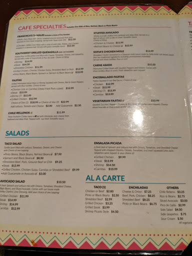 Plain and simple....horrible and I dont recommend it. Where to start the complaints... 1. Mexican cafe through the yelp app stated free dip with dinner. We arrived around 6pm and we were denied a free dip with the coupon. Owner said she never agreed to it via the app. 2. Wait staff is young, high school aged with no clue. Very smug to the customers. Not a Mexican/Spanish person in the place that worked there. 3. Charged for plain chips (without dip). Never been to a Mexican place that didnt give free chips. Didnt even know til they handed the bill. 4. Beans were not refried. Whole beans with a little liquid. Didnt taste right. Probably out of can. 5. Place was just dingey all over. 6. Food took forever, bill took forever, food was mediocre at best. 7. No sour cream with entrees. We had the chicken fajitas and the enchilada supreme. In summary. Stay away from this dirty, poor service, blah food, not worth time or money place.