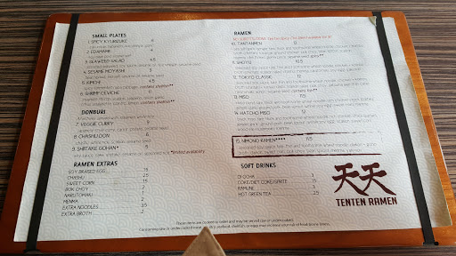 I am of Southeast Asian heritage and my tastebuds are very much so. Where I come from we eat lots of different types of noodle prepared many different ways. So Im no stranger to well prepared noodles dishes...including ramen. The day I paid a visit, I had a bad craving and made a conscious trip out to try Tenten Ramen. They are located right next to the USAA bank, on the corner directly behind Mission Barbeque and Dock St Bar & Grill. When I walked in I was pleasantly greeted by the staff in the traditional Japanese welcome "irasha-i". I sat at the long counter parallel to the small kitchen and my cheerful server got me a menu. She was quite knowledgeable about the menu and made good recommendations. I ended up going with the Shoyu because I wanted porkbelly badly and opted for extra ground pork. When my steaming bowl arrived, the server knowing I wanted to add the spicy option gave me a special chilli paste on the side so I could adjust the spice level to my satisfaction. The noodles were a good slightly chewy texture and the broth was substantial with a well seasoned flavor. Some of the ingredients such as the seasoned egg were cold and needed to be mixed in with the broth and noodles. That is quite the norm for serving ramen that most people dont know, but I think the staff could been better briefed about advising their customers to mix the ingredients well upon being served. I ended up with broth left over so I asked for extra noodles ($3.50) and they gave me a to-go container for my leftovers. I struck up a brief conversation with my server and found out that the shop had only been open for about 9 months. Kudos! The shop was well lit & had a nice "little ramen shop in Tokyo" feel to it complete with 2 pachenko machines decorating one wall and Pokemon playing on the flat screen in the corner. I had a chance to talk to some other patrons who ordered Ramune (type of Japanese soda) who sat at the same counter which i later found out were regulars. All in all, I think this place is here to stay. Its a great little local authentic joint and will be coming back hopefully with friends in tow!