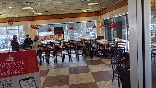 If youre looking for a decent cafeteria style meal, with half of a rotisserie chicken and side dishes all for around $7.00-$10.00 as of about March 2009, Boston Market fills the bill. The chicken is properly rotisserie cooked and the spices and glazing are worthy. My experience has been that the stewed vegetables might have been stewing for far too long, but thats what you get when you drop in after dinner to a place that really specializes in a long lunch. I have heard unverified rumors that police officers and their families get half-price, which certainly would explain the large number of officers that patronize the place. Or perhaps its just that the food is good, a person knows what to expect, and its got a family atmosphere that definitely caters more to the mature set than to the teen crowd. Kids with parents or escorts are always welcome, of course.