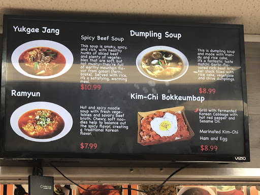 I love this place and have been coming here for years. Some favorites include chicken or beef bulgoki, which are both excellent and fairly priced. The dumpling soup is my go-to for cold rainy days. Also, their ramen (they call it raymun) is quite good, if a bit more basic than whats sold at the trendy, high-end ramen shops. Caveats are the ubiquity of styrofoam in both cups and takeout containers, and Id like to see some better iced tea options. For decent unsweetened iced tea Ill usually head across the street to get one from Carmas.