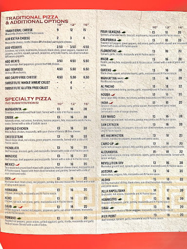 Ive loved their pizzas and Mediterranean food for many years. They always deliver earlier than expected. Whats great about their pizzas is that they do their dough right there by hand!