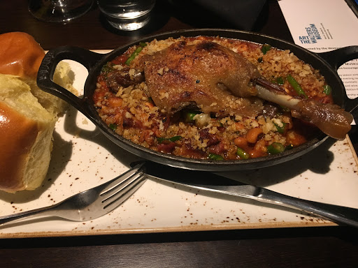 Husband and I walked here from our hotel on the harbor, and we both really enjoyed our meals! The cast iron crab cake and wagyu burger were delicious. One of the most interesting cocktail menus I have seen. The dessert menu was also really unique, but unfortunately we were too stuffed from the generous dinner servings. The service was absolutely impeccable. We were a little worried about possibly being under-dressed beforehand (we were wearing nice t-shirts and jeans) but didnt feel out of place at all once we got there and saw the relaxed, friendly atmosphere. Props for very stylish decor as well. Thanks for a great meal!