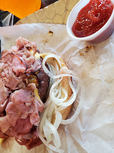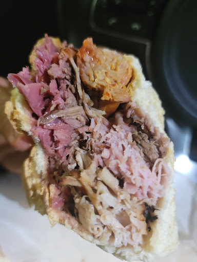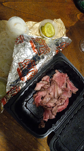 This was my second visit here and the food was killer again! I went for The Big John this time (turkey, ham, corned beef, pit beef and Italian sausage). It was off the hook. There must be over a pound of meat on the sandwich. Their fixings bar lets you make it any way you want. Donna was again fabulous and helpful taking orders. She can tell a regular from a newbie. She provides as much assistance as needed to the newbie and lets regulars order efficiently. As noted in other reviews, it shares the parking lot with a "gentlemans club" but dont let that scare you away. My wife was wondering where I was taking the family, but she knew why we came after the first bite. I cant tell you about the sides, because Ive never messed around with sides. You come for the pit grilled meats not the french fries, etc...