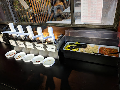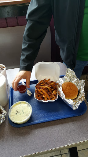 The pit beef sandwich that I had was good. It lacked salt though adding a bit of sauce to it filled in nicely. The smoky flavor was surprising and a good addition to it. The term, "dont judge a book by its cover" rings true with this place. Its quite small and dismal looking from the street but brimming with life on the inside. On a sour note my wifes dish, fish platter was quite soggy. It was soaked in oil along with the fries that accompanied her dish. What a shame because mine was the opposite. In addition the cashier seemed a tad preoccupied with scratching her head among other things. Dont worry, the people handling the food have on gloves and seem completely focused on their jobs. I decided to go back and order a drink just to see if we caught her off guard. She was much nicer and even smiled this time. Again based on my meager meal Id still give 3 stars as I did enjoy the food and the place. Id recommend it and would encourage you to try for yourself!