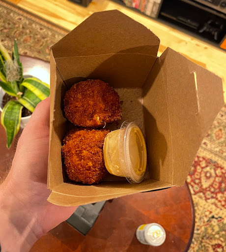 No cash, no cards (left them at hotel) - no problem! On my word/honor that I would pay them later, I got the $12 The Original (Thai chicken meatballs on rice, coconut peppercorn sauce), & a $5 side order (tempura broccoli). Both juicy & delicious!