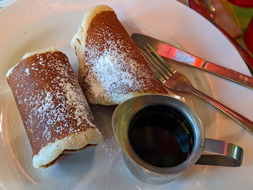 This place was pretty OK. The first thing I really, really loved about it was the funky decor. Little Tchotchkes everywhere, a trip down nostalgia lane for some of us. I was seated right away and that brings to my first let down. The coffee. It just wasnt good. It wasnt flavorful or hot enough. No matter, I bravely looked over the menu. I settled on a veggie omelet with pancakes on the side. The veggies in the omelet were SUPAH fresh, and so tasty, but the omelet is cooked differently than I am used to. Most places put the ingredients in while the eggs are still setting, so the stuff gets all mixed in and coated in egg. Here they put the ingredients on after the egg was already set, so it was kind of like a veggie soft taco with an egg instead of a tortilla. Not bad, just different. Then pancakes and my second let down, they were only OK. I really wanted them to be FABULOUS, and they just werent. Last, no one came by to bring me any more coffee (so I cant tell you if that awful cup was an anomaly or not). The check was reasonable, people were friendly, and the menu looked interesting, but for this tip I can go only give it an OK. Def going to go back and see if it was just an off day, will update when I do!
