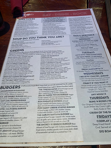 Our first meal at 510 Johnnys was not nearly worth the price. Fried pickles were mediocre. The cream of crab soup was too salty and pasty with a few lumps of crab. My cob salad included wilted, old ice berg lettuce, and the blackened chicken that covered the salad was way too spicy hot and dry. The entire salad was inedible and came without the dressing the server suggested. My daughter ordered Tilapia that arrived without taste or seasoning. My husbands crab cake was mostly filler and his steak was tough. Sorry, 510 Johnnys, we wont be back. Please listen to your customers here. Our server did a good job though.