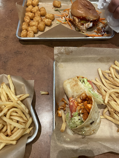 One of my favorite places to go grab a bite with friends. Very clean and up to date. Service is good and the waiters are very friendly. Im not into sports but my friends and I go every Sunday after youth group at our church. We love it and they love having us (even when theres 40 of us). The prces are reasonable and the foo is great.