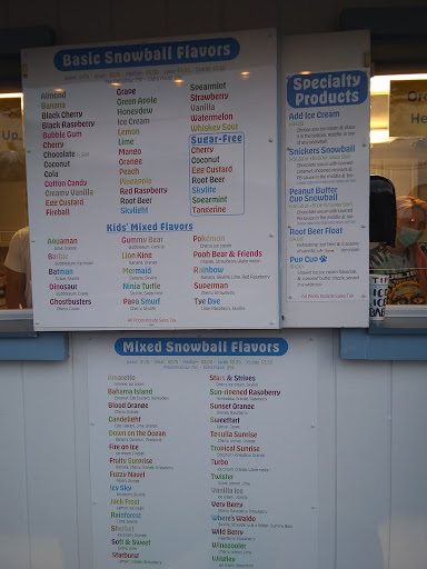 Great snowballs and ice cream. Plenty of seating. Friendly staff. And good prices. Really liked the place! Glad Google helped me find it!