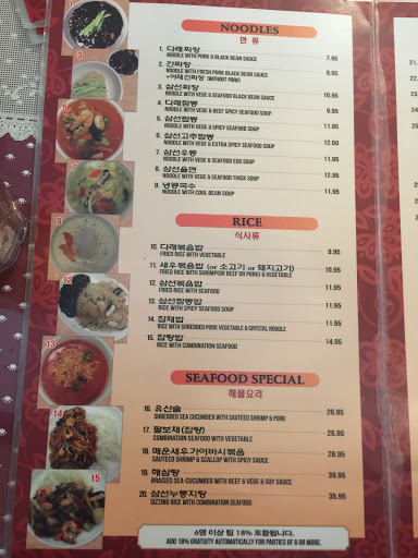 Ordered a series of samsun menu - samsun spicy noodle soup, samsun black bean noodle, and samsun fried rice. Quality of food was lower than expected. Reminded me of a restaurant in a small village in Korea. Service was just okay. No one said Hi when coming in, nor Good bye when going out.