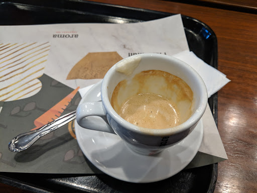 Very nice expresso bar. Excellent expresso and other coffee drinks (heavy duty professional expresso machines I gleaned). Food here is fresh (sandwich based for the most part). Pleasant staff as well. And during this World Cup they showed soccer! (bonus points)