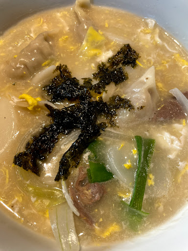 the manduguk or dumpling soup dinner will cost $15 and you get 5small pan chons or plates of apps like veggies and kim chi. I feel the food was abit bland maybe to cater to the demographic that cannot handle the true spiciness of kimchi or korean food. the soup needed alot of salt and pepper. but it was had mase dumplings so those were good. I had high hopes bc it was like a small mom and pop ran by two waiter boys much like many family ran korean places but it was alittle on the slow side in terms of service. sp know what you want by the time they come back with water. its clean and small. mochi ice cream comes ungarnished.