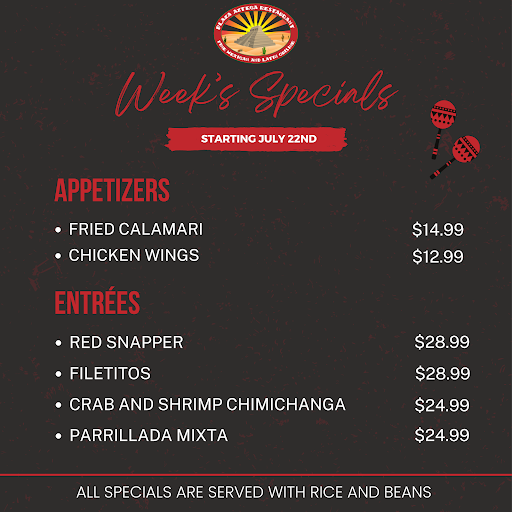 Plaza Azteca is our easy go-to place for a relaxed family meal in a friendly setting. The food and the service are consistently good. Margaritas are large and quite satisfying. We have gone there many times and have always enjoyed our meal.