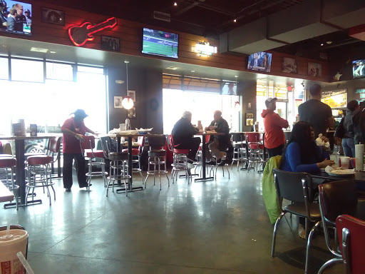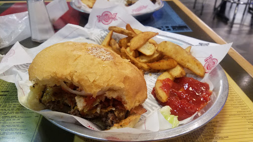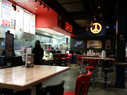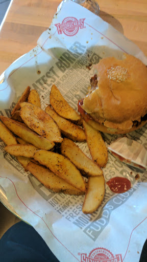 Standard fuddruckers. Its ok. Clean and ok service. Ok burgers, not much flavor nor quality in the patty, buns are so much bigger than the 1/2 lb. Patty. Barely gives you any fries ( drastically different and a substaintial reduction from the amount they previously gave and other Fudds give normally, Im talking they gave my friend; no exaggeration,we counted like 10 fries at most, on two occasions, So maybe management gave fry prep station this standard to save money?) Many go b/c people like the melted cheese sauce and the build your own toppings options at fuddruckers. But if thats not a big deal for you, imo five guys is much better.