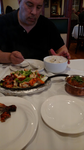 A friend and I stumbled across this resturant last night. She had never had indian food and I have not had any in quite a while. We started off with a pot of chai tea that was well spiced yet still tasted like tea. My one complaint is that the menu is difficult to read due to the font that is used. We asked the waiter if they had a "sampler type" platter and was told that they do not. He got the chef/owner who served us samples of lamb (which my friend had never had) and a sample of sauce to determine how spicy we wanted our food. We asked him to pick out three dishes for us, one each of lamb, chicken, and seafood. He asked us about allergies and told us that he would give us three dishes that complemented each other. I cant tell you what we ate, only that it was A-MAZ-ING. A variety of textures, spices, and levels of "hotness". When I thanked the owner/chef for taking such good care of us, his heartfelt reply was that he wanted people to feel that they were his honored guests in his home and not just customers in a resturant. Cost wise it was on the higher side. One pot of tea, one garlic naan, three entrees, and two desserts was $40 each with a 20%-ish tip. Well worth it but honestly more than I want to spend for dinner for one. I am looking forward to making the trip from Waldorf for the weekday lunch buffet which is closer to $10.