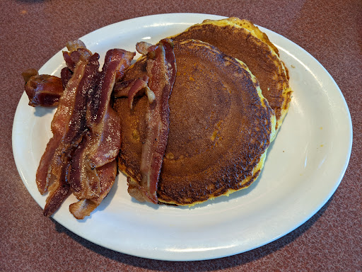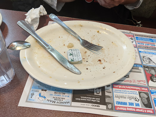 First of all, I LOVE eating breakfast out! So its quite unusual for me not to enjoy a breakfast out... after all, how can you mess up pancakes & eggs? Well, this place did. 1. Our food was lukewarm. 2. The pancakes taste... STRANGE... my husband and I could just not figure it out. They are more yellow than Ive ever seen before and were simply not palatable. My husband and I both left half of the pancakes untouched. 3. The prices were high. I paid $7.65 for two pancakes & two eggs. There was 1 combo plate available that included many breakfast favorites, but I dont eat meat so I had to order a la carte. 4. When we walked in, my husband quickly noticed signs about gratuities automatically being included... they have a system all worked out - 15% on any bill over $30 from __am-__pm; thereafter 15% automatically included. Period. Is this because they know the food and service are not that great and they dont want to get "stiffed"? Oh well... they lost out. We usually tip 20% or higher. 5. While it could be considered prompt service, it was unfriendly service. 30 seconds after we sat down, our waiter approached and without a greeting, asked us if we were ready to order. Um, no. It was our first time to the diner ever. We were unfamiliar with the massive, jam-packed, tedious menu. Plus, we were preoccupied with trying to make space on the small table that was overcrowded primarily by a huge bowl full of condiments. So, needless to say, we will not be going there again, and I would definitely not recommend it to friends or even enemies. Youre probably better off with McDonalds. Seriously.