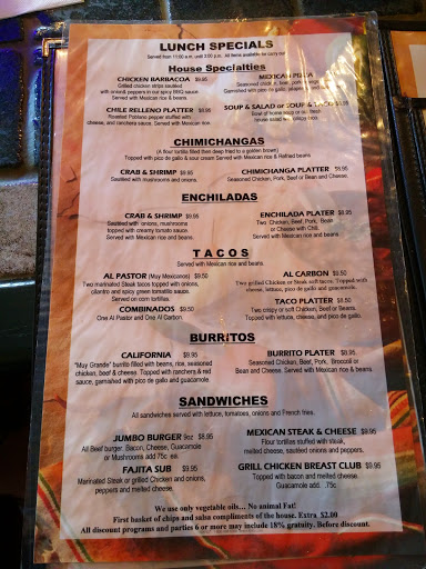 This once was my favorite MexicAn restaurant. However, the last time my husband and I went we were extremely disappointed. I almost always get the steak tacos al carbon and did so on this visit. Strangely they tasted very, very salty! Never had before. That night I couldnt get to sleep for the life of me. They means they used a ton of MSG! Aside from making me thirsty, MSG keeps me awake all night. Will not risk going again unless they can promise me no MSG! I dont like listening to my heart pound all night long.