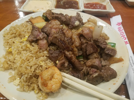 Its a Hibachi restaurant, but the Chef couldnt even do the big fire to start. No chatter at all. Egg trick was just spinning one on the grill, then tossing it about 2" in the air off his spatula. Onion ring tower was 3 pieces high with about a 2" hole that flamed for a second or two. I got the vegetable meal and he cooked the vegetables first and put them on my plate. I ordered the steamed rice and it didnt come until well after Id finished. They would have been completely cold if I had waited. And, of course, the whole time I was waiting for a water that didnt come until after she came with the rice, which I refused, and then re-asked for my water. I wouldnt recommend this place.